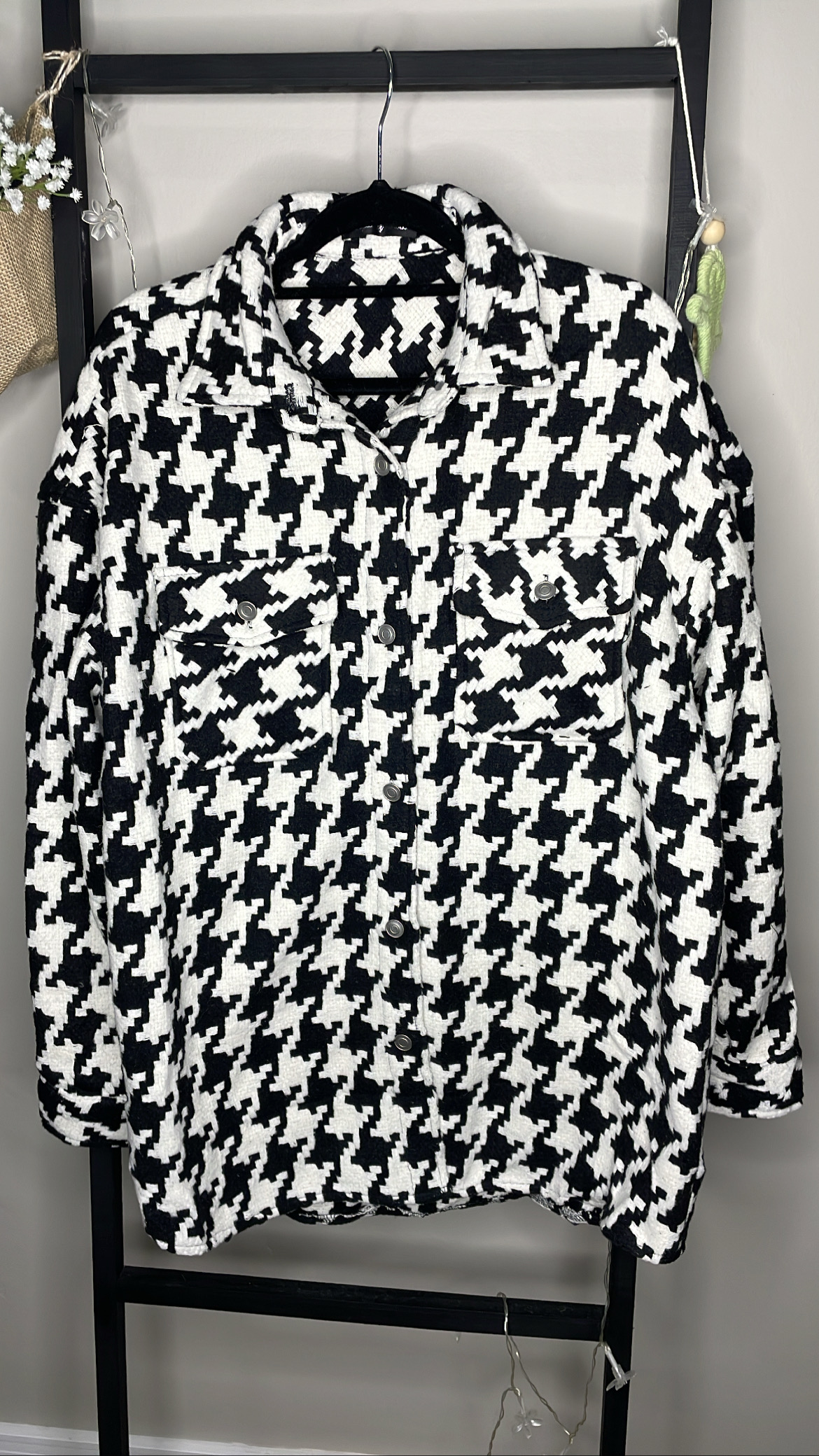 Jaqueta em TWeed estampa Pied de Poule. Bolsos frontais funcionais.