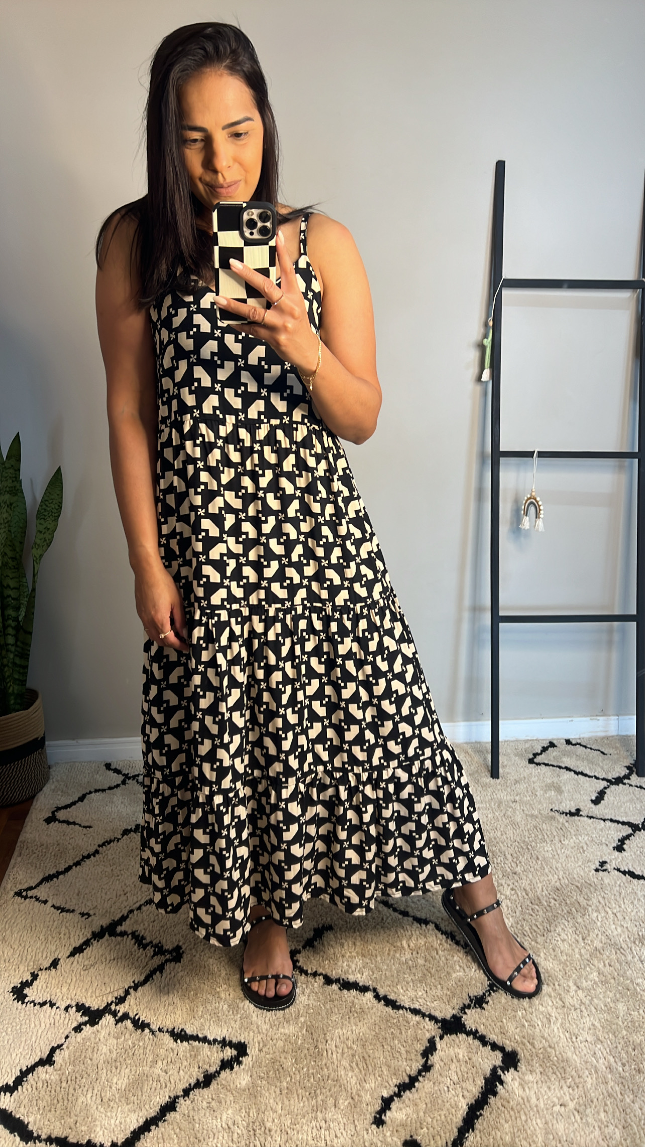 Vestido comprimento midi, alças reguláveis, elástico nas costas para melhor ajuste ao corpo, 100% viscose, tamanho único que veste do 38 ao 44.