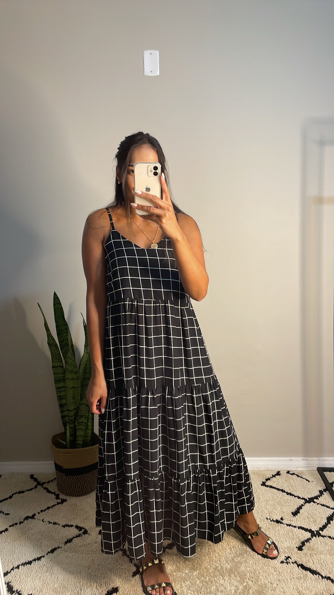 Vestido camadas quadriculado