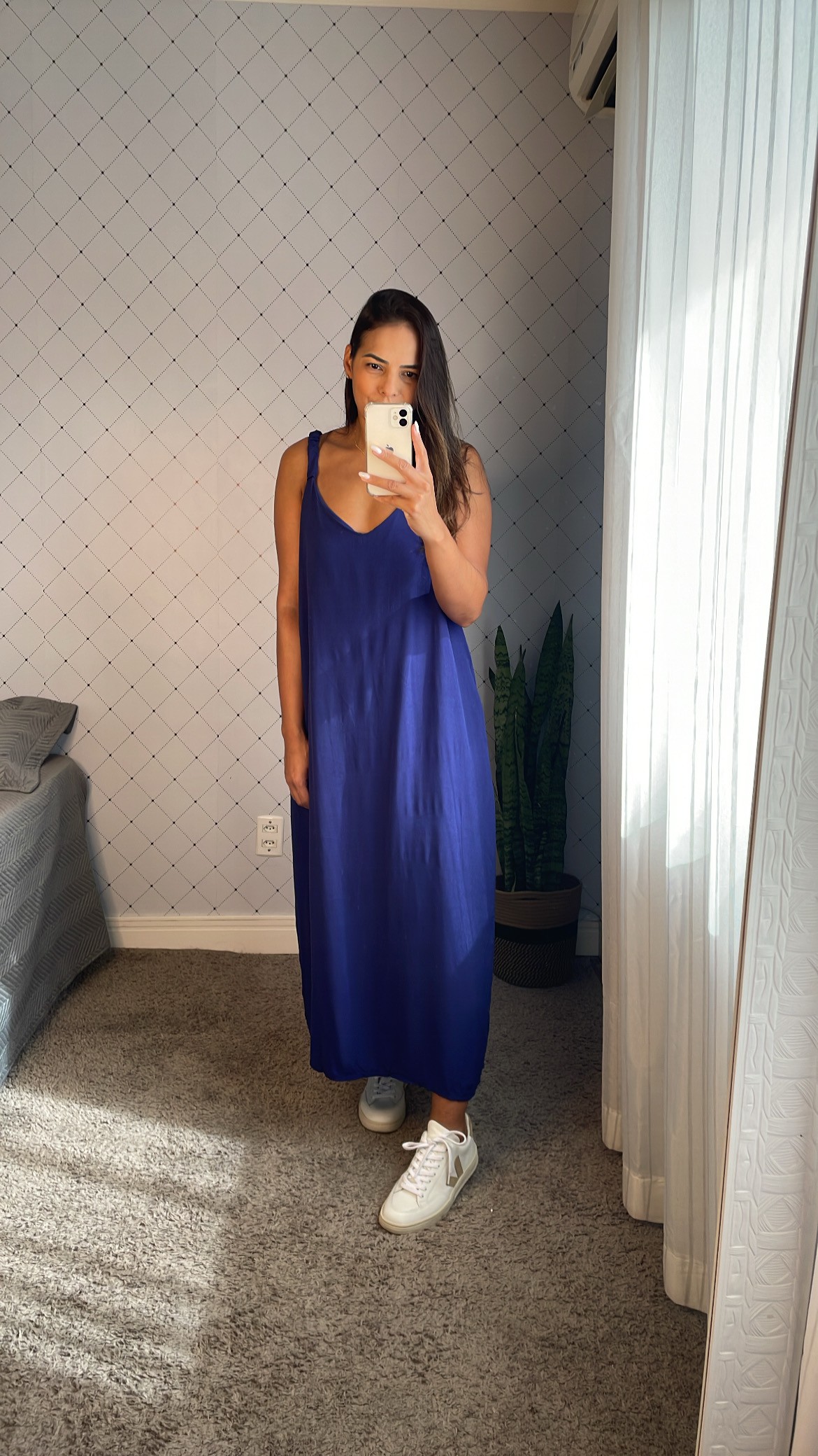 100% viscose, alças com elástico (não tem ajuste de regulagem), possui forro.